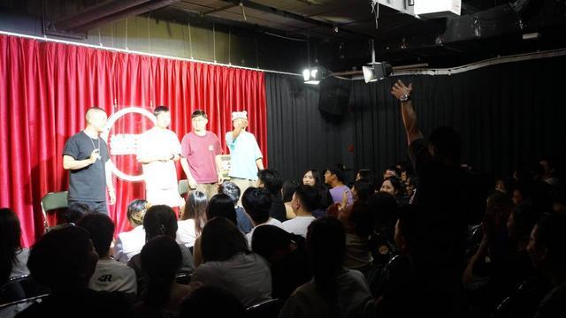 连日来,位于时代广场购物中心三楼的猛果喜剧剧场内,即兴演出专场座无虚席。现场,台下观众随机抛出关键词,台上的演员则需要将这些毫不相关的词语即兴演绎。夸张的肢体表演配合急中生智的笑料包袱,引得全场掌声不断,笑声阵阵。
